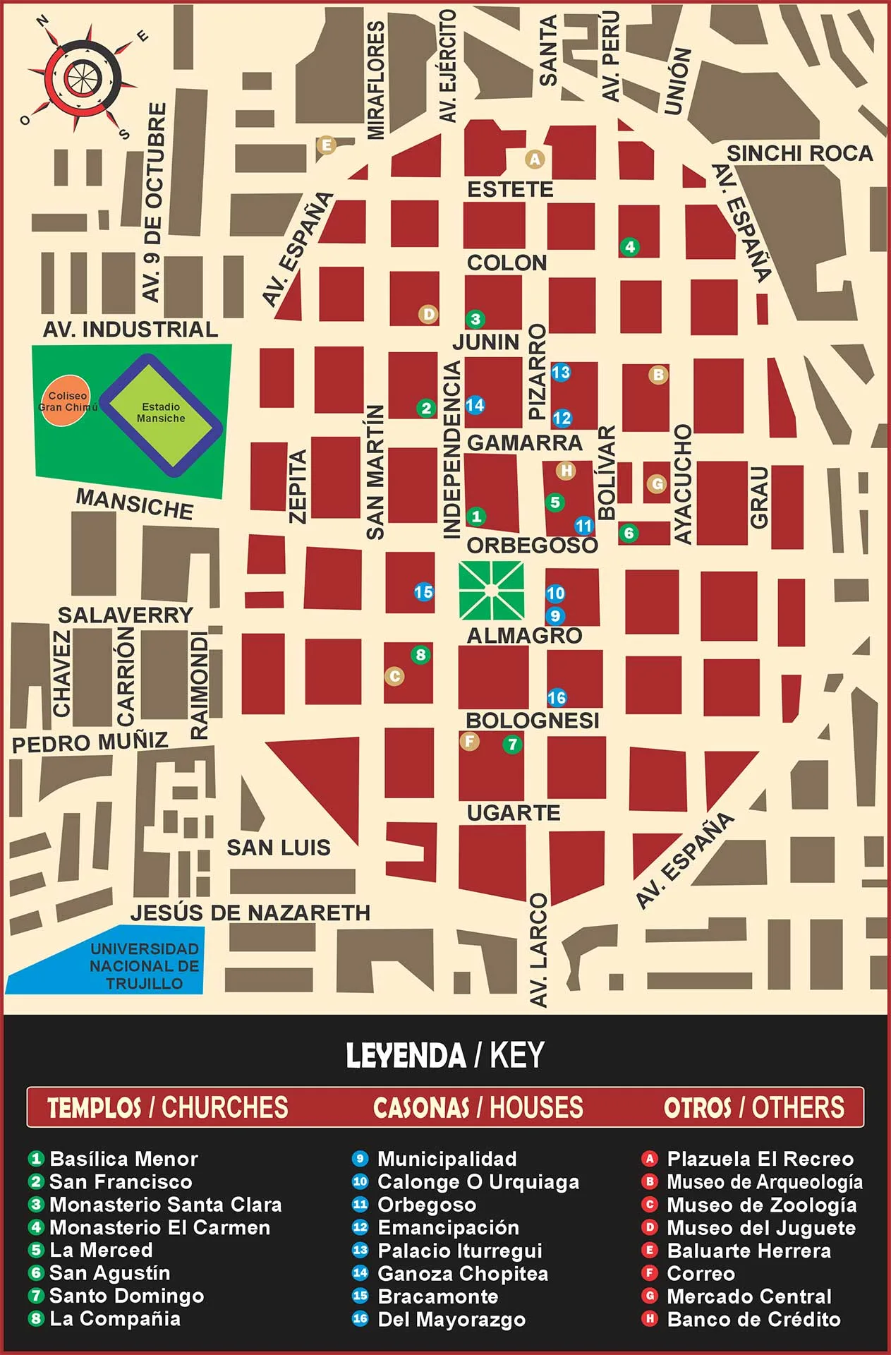 Nuestro City Tour en Trujillo empieza con la histórica Plaza de Armas, donde nuestro guía explicará los detalles del monumento a La Libertad. Así como la historia y detalles de las construciones más representativas ubicadas frente a la plaza.