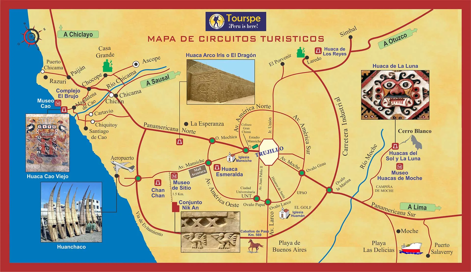 – Tiempo para almorzar en Huanchaco, pueblo ancestral de pescadores. Aquí tendremos tiempo para caminar por la playa y hacer fotos con los «Caballitos de Totora».